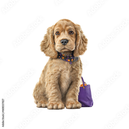 Adorable Golden Cocker Spaniel Puppy in Halloween Costume with Treat Bag