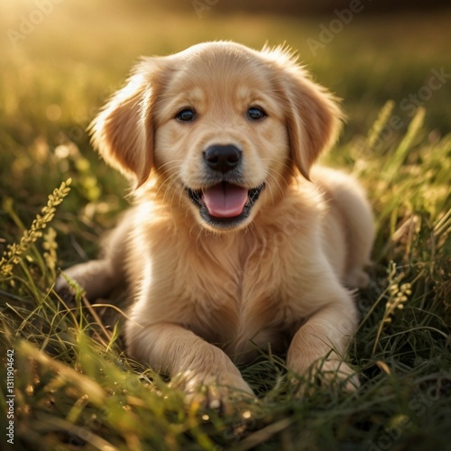 Adorable Golden Retriever Puppy in Sunlit Field