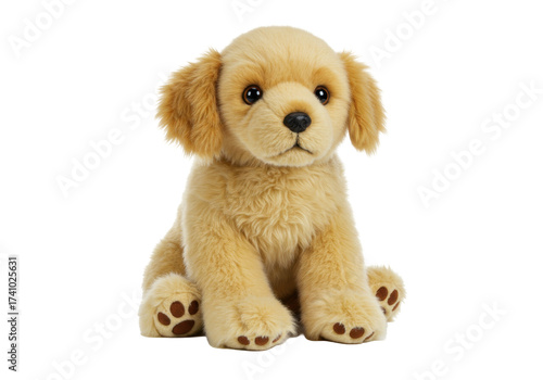 Adorable golden retriever puppy plush toy isolated on transparent background, cute stuffed animal for kids and pet lovers