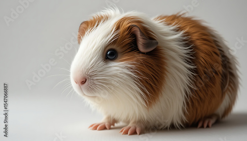 Adorable Guinea Pig with Brown and White Fur, Pink Nose, and Dark Eyes