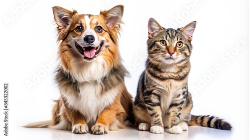 Adorable happy dog and curious cat sitting together in perfect harmony on a transparent background, showcasing joyful friendship and companionship.