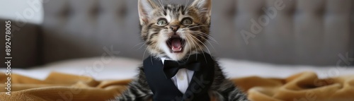Adorable Kitten in Fashionable Attire Celebrates with Joy, A Must-See Photo This Cute Kitten Dressed in a Tuxedo is the Epitome of Celebration See the Joy in This Adorable Animal Photo Find More Cute