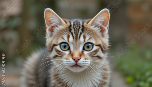 Adorable Kitten Portrait with Striking Green Eyes and Brown Fur Gaze