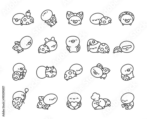 Adorable ladybug character. Coloring Page. Funny cartoon insect. Hand drawn style. Vector drawing. Collection of design elements.