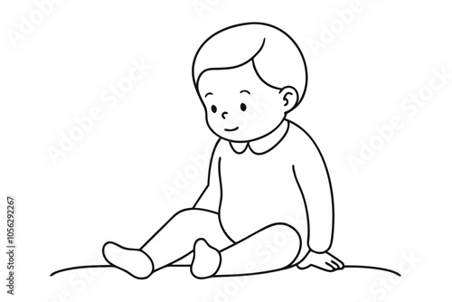 Adorable Line Drawing of Toddler in Onesie Sitting on Floor – Minimalist Art for Nursery Decor