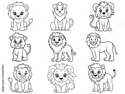Adorable Lion Cubs And Majestic Adult Lions In A Charming Black And White Illustration Perfect For Coloring Pages