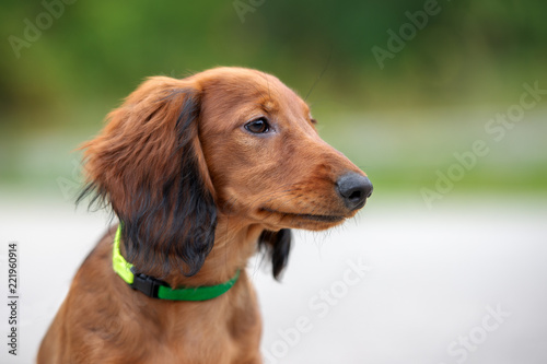 adorable long haired dachshund puppy portrait outdoors