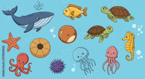 Adorable Ocean Animals Cute Cartoon Sea Creatures Illustration