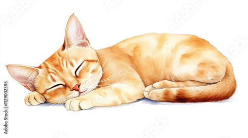 Adorable orange tabby cat sleeping peacefully, showcasing its soft fur and relaxed posture