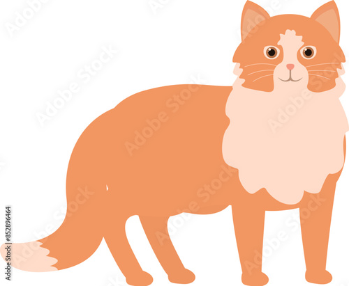 Adorable orange tabby cat with a fluffy chest is standing and looking forward