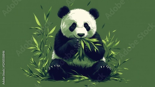 Adorable Panda Sitting Among Bamboo Eating Green Leaves in Nature