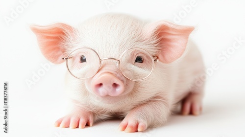 Adorable piglet with glasses in a whimsical studio setting - close-up photography