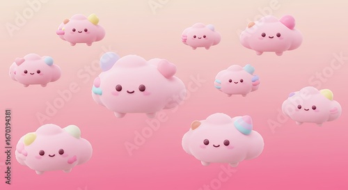 Adorable Pink Clouds with Pastel Decorations - 3D Render