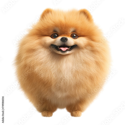 Adorable Pomeranian dog with fluffy fur smiling, isolated on a transparent background.