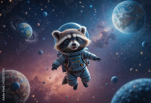 Adorable Raccoon Astronaut Soaring Through Space