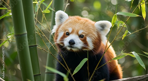 Adorable Red Panda Amidst Lush Bamboo