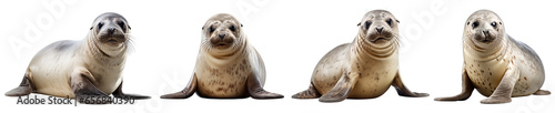 Adorable Seal Pups in Various Poses collection cut out transparent isolated on white background PNG