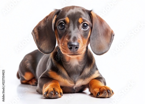 Adorable Short-Haired Dachshund Puppy Side Profile, Isolated on White Background - Stock Photo