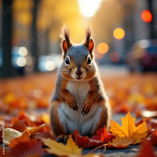 Adorable Squirrel Amidst Autumn Leaves in Soft Sunlight