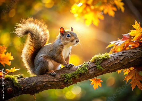 Adorable Squirrel Posing on a Majestic Oak Tree Branch in Autumn