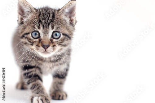 Adorable tabby kitten sitting and looking curious, vibrant and detailed, pet photography