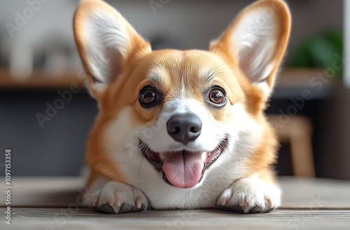 Adorable Welsh Corgi Dog Smiling Joyfully in a Cozy Home Environment : Generative AI