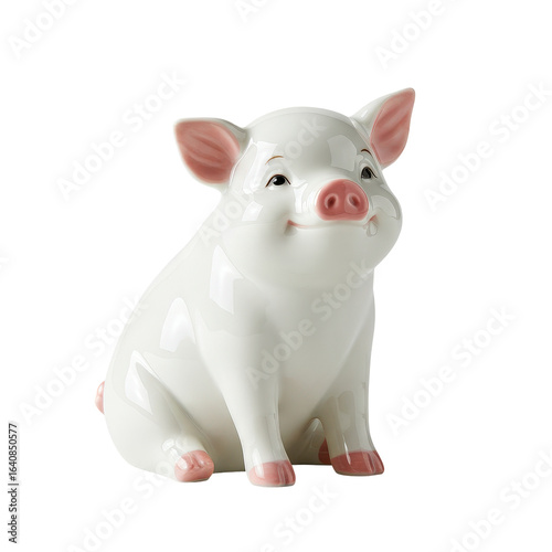 Adorable white and pink porcelain piglet figurine sitting with a happy smiling expression