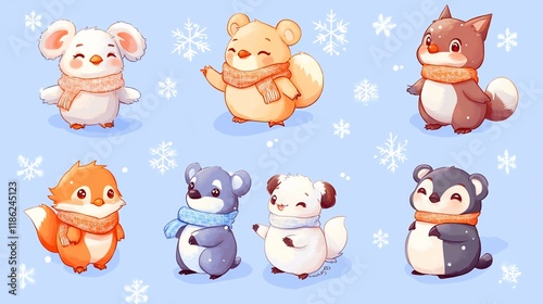 Adorable Winter Animals: A Collection of Cute Cartoon Creatures in Scarves