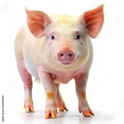 Adorable young piglet standing on white background farm animal