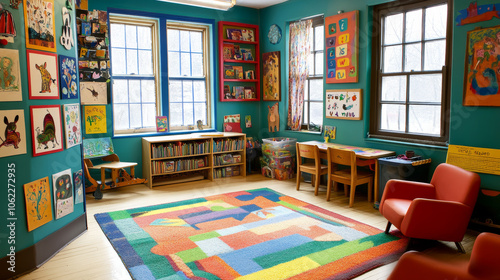 Adorn walls with fun decor like alphabet posters, numbers, shapes, and colorful animal or nature murals. Show a few kids’ drawings on display, adding to the cheerful ambiance.