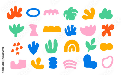 Adstract shapes collection.Simple freeform, asymmetric blob.Hand drawn trendy basic figures.