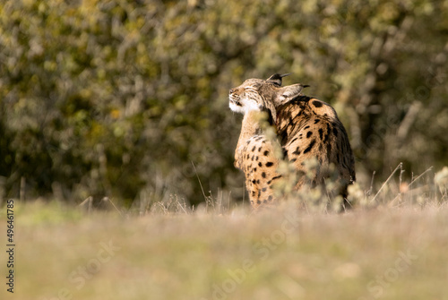 Adult male Iberian Lynx in a Mediterranean forest in the early evening light of a cold January day