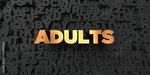 Adults - Gold text on black background - 3D rendered royalty free stock picture. This image can be used for an online website banner ad or a print postcard.
