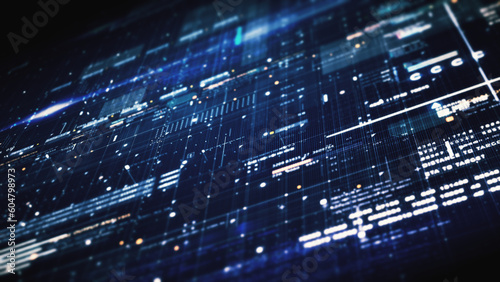 Advance data matrix, telemetry and encrypt numbers simulation user interface display in cyber space abstract de-focus environment background