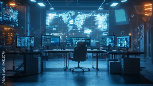 Advanced Cybersecurity Command Center with Global Surveillance Map