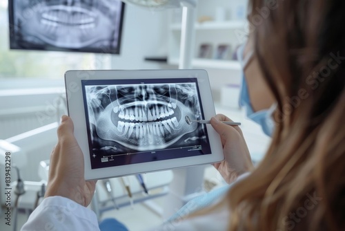 Advanced Dental Technology: Dentist Explaining Digital X-ray to Patient in Modern Clinic