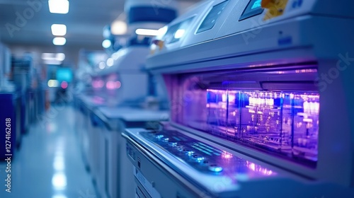 Advanced Laboratory Equipment with Neon Lighting During Research in Modern Science Facility