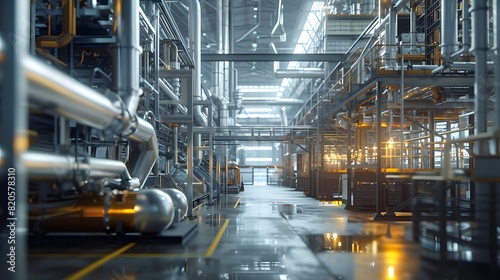 Advanced manufacturing facility using AI and renewable energy, with a focus on environmental health and safety measures. 3D, Printing, Illustrat, AI.