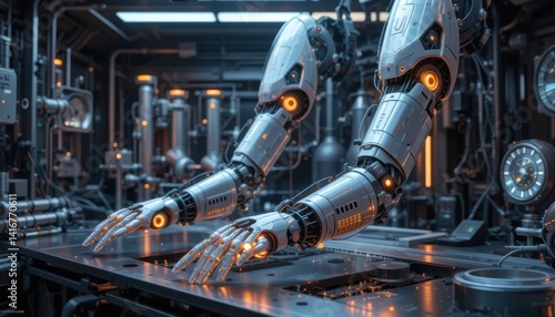 Advanced robotic arm technology revolutionizing industrial automation futuristic research lab digital art high-tech environment close-up perspective
