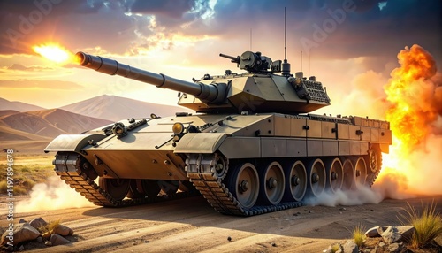Advanced Self-Propelled Gun in Action on Military Training Ground