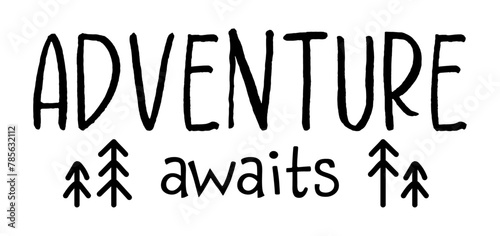 Adventure Awaits Handwritten Lettering Doodle Forest Trees Camping Concept