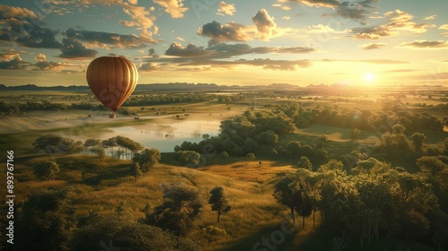 Adventure Awaits Hot Air Balloon Soaring Over Vibrant Fields Travel and Wanderlust Concept