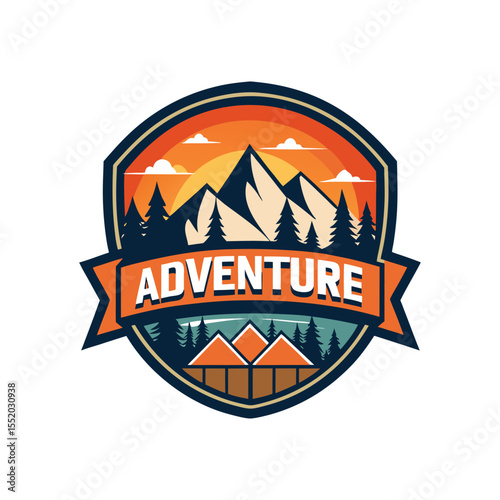 Adventure, travel, mountain, t-shirt, badge, logo design