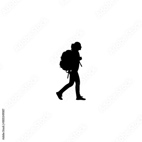Adventurous traveler with backpack confidently strides forward on a journey of discovery