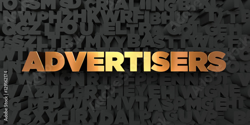 Advertisers - Gold text on black background - 3D rendered royalty free stock picture. This image can be used for an online website banner ad or a print postcard.