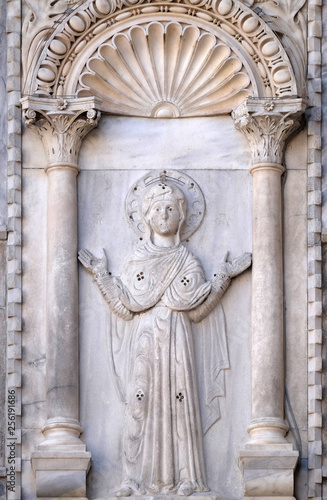 Aedicule with the Virgin Mary, north side of St. Mark's Basilica, St. Mark's Square, Venice, Italy, UNESCO World Heritage Sites