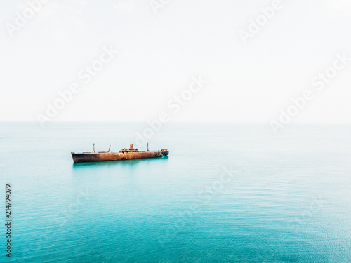 Aerial Drone View Of Old Shipwreck Ghost Ship Vessel