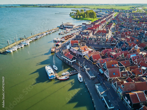 Aerial drone view of picturesque village of Volendam in North Holland, Netherlands
