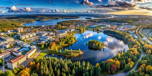 Aerial Jyväskylä Finland: Panoramic Cityscape View, Rule of Thirds Composition