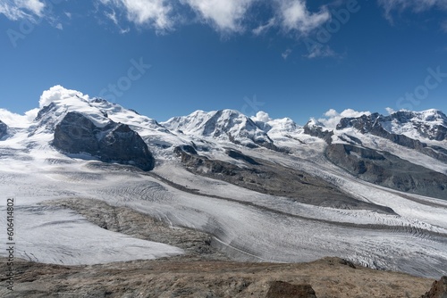 Aerial landscape of the mesmerizing snowy Gorner Glacier